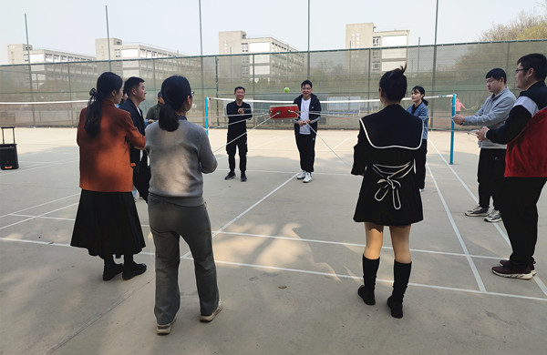 随后,老师们在教练带领下开始素质拓展活动,一个又一个的趣味游戏也随即展开。破冰分组,小组展示几项团体活动,让老师们快速熟悉的同时,锻炼了老师们之间的协作能力,增强了大家的团队意识。老师们的欢声笑语,贯穿整个活动,吸引不少学生观看。在经过了短暂的休息后,抢水、挑战numberone两项比赛更是激起了大家的斗志,也将此次活动推向高潮。
