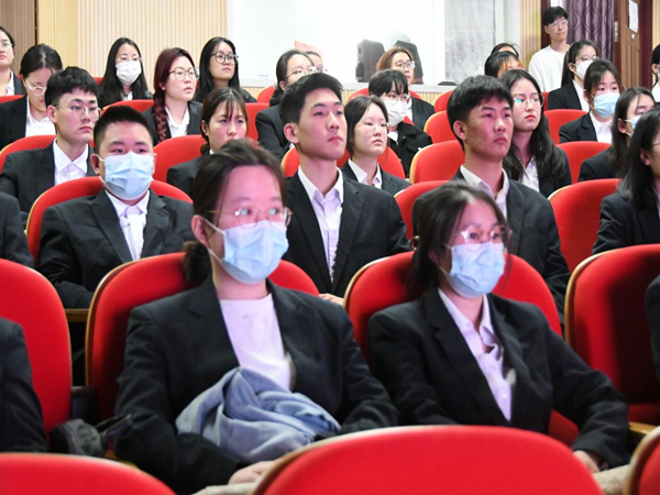 在完成开班典礼所有议程后,学院党总支副书记(主持工作)洪玉为全体学员进行了主题为“端正入党动机 争做合格党员”的党校第一课。