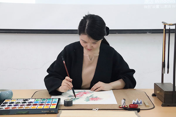 “青青林中竹,可作白团扇。动摇玉郎手,因风访方便。”团扇,又称宫扇、纨扇,是中国汉族传统工艺品及艺术品,它代表着团圆友善、吉祥如意。据悉,风景园林专业开展此次活动的目的是为了给学生们提供一个展示个人成果的机会,同时打造特色课程建设。在准备阶段,风景园林专业教师朱彦和李燕飞为每个参与者提供了团扇、折扇、颜料和画笔等材料和用具,同时还准备了丰富多彩的绘画题材供学生选择,例如自然景物、动物等。从调色——选图——构思——白描——着色——落款的全过程进行指导讲解,学生作品呈现效果喜人。