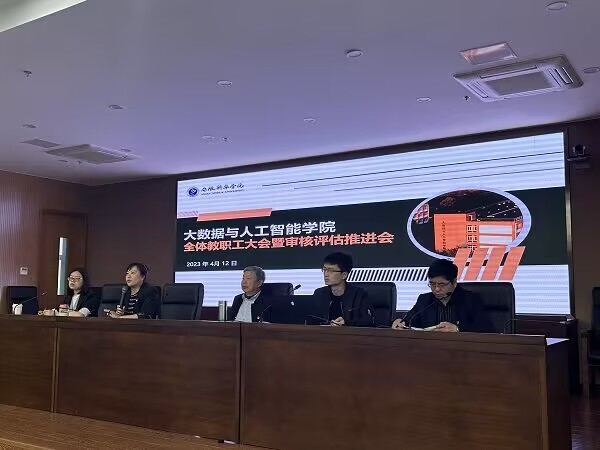 会上,万家华介绍了教育部新一轮本科教育教学审核评估背景和学院审核评估工作实施方案、指标体系内涵解释等内容,刘磊就大数据与人工智能学院档案体系进行介绍与解读。吴建国指出,新一轮教育部本科教育教学审核评估聚焦立德树人成效,强调在日常工作中,注重质量文化、常模参照和指标选用,突出常态数据资源,以团结一致、全力以赴的状态做好各项迎评工作。