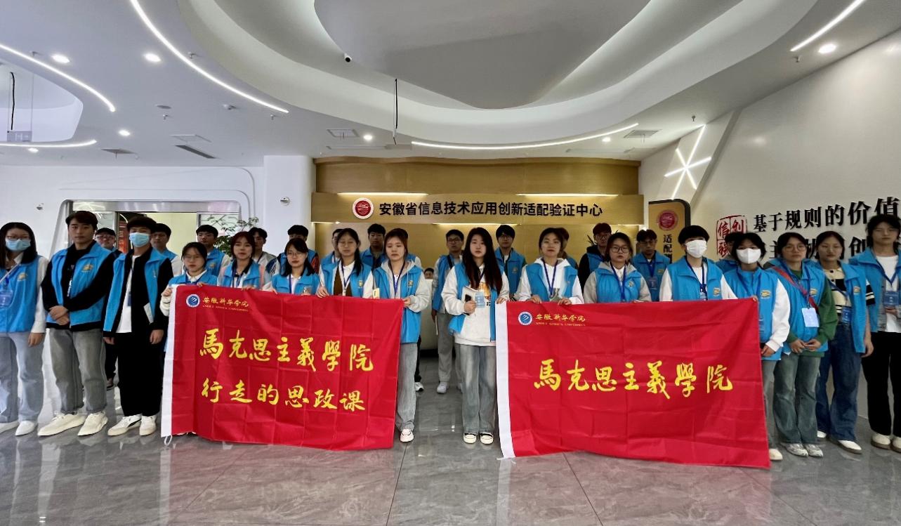 经由我校马克思主义学院与合肥市高新区“神奇校车”科技游主管单位的积极接洽,4月28日,马克思主义学院开展“游中国声谷 观量子中心”主题游学活动。在马克思主义学院教师带领下,来自大数据与人工智能学院、电子工程学院/智能制造学院共40余名学生搭乘这辆“神奇校车”走进中国科学技术大学先进技术研究院和安徽省信息技术应用创新适配验证中心等高新企业参观学习,将思政课从学校课堂搬进社会大课堂。