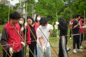 首先由朱平教授做开工动员指导讲话,他分析了劳动的本质与内涵,以自身上山下乡的四年劳动经历为例,表明了劳动教育对个人发展、对社会进步、对国家富强的重要意义。随后马晓静老师给大家做了向日葵种植技术培训与讲解,为大家解疑答惑,让大家能够科学地参与到劳动实践中去。最后城市建设学院葛强同学做了围栏制作与安装的讲解。仪式结束后,师生们投入实践,在地里种下了向日葵种子和各种花草植物,搭建起了竹栅栏。