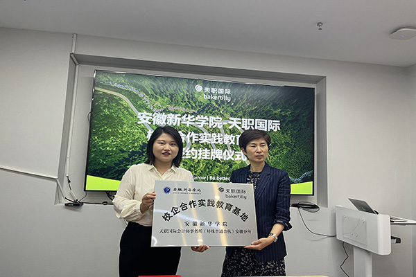 会上,天职国际合伙人、安徽分所所长文冬梅女士对濮明月一行的到来表示热烈欢迎,介绍了企业的发展历程、企业文化及公司经营情况。濮明月仔细询问了企业的用人需求,表示学院始终坚持立德树人根本任务,坚持就业育人目标,优化学科专业布局,致力于产教融合、科教协同。双方围绕企业现状、人才培养、校企合作、发展路径和合作意向等方面进行了深入探讨,共同就学科专业设置、就业服务等方面交换意见,签署共建就业实习基地协议并举行了揭牌仪式。