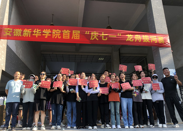 本网讯(通讯员:姚晶晶)6月27日,安徽新华学院首届龙舟拔河赛在校内如琴湖精彩上演。下午3点,教职工代表队和学生一队蓄势待发,随着裁判员一声哨响,比赛正式开始。