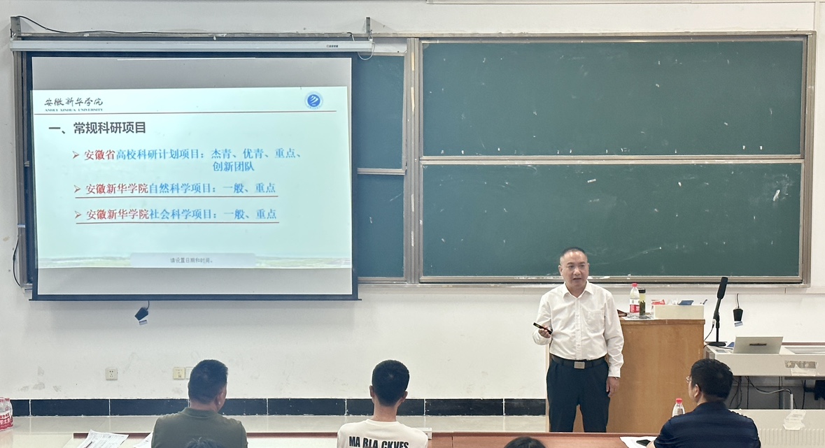 本网讯(通讯员:徐玉珊)为了进一步提升教师团队的科研能力,提高校级科研项目的申报成功率,大数据与人工智能学院于9月13日下午开展了校级科研项目申报专题讲座。本次讲座有幸邀请到安徽省数学会理事、安徽省教学名师、安徽新华学院科技处副处长(主持)邱国新教授,为大数据与人工智能学院全体教师及电子工程学院/智能制造学院部分教师代表开展了一场关于“如何撰写校级科研项目申报书”的指导讲座。