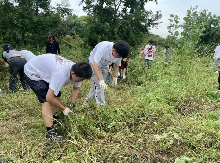 在劳动教育研究中心的统筹安排组织下,各学院师生代表到达基地并明确好劳动分工,随后师生代表们投入劳动,纷纷拿上劳动工具参与到劳动实践中去。新生们表现出了极高的积极性和责任感,他们以饱满的热情投入到劳动实践中,协同配合,互相帮助,不知不觉新同学之间的陌生感早已消散。