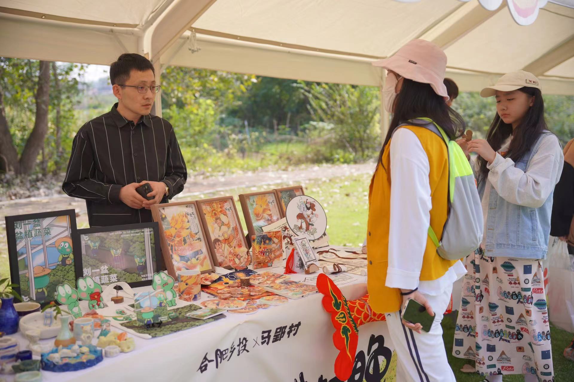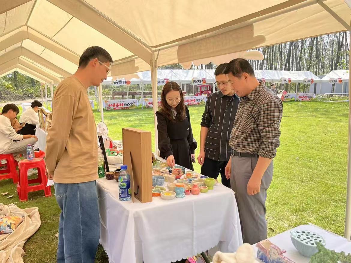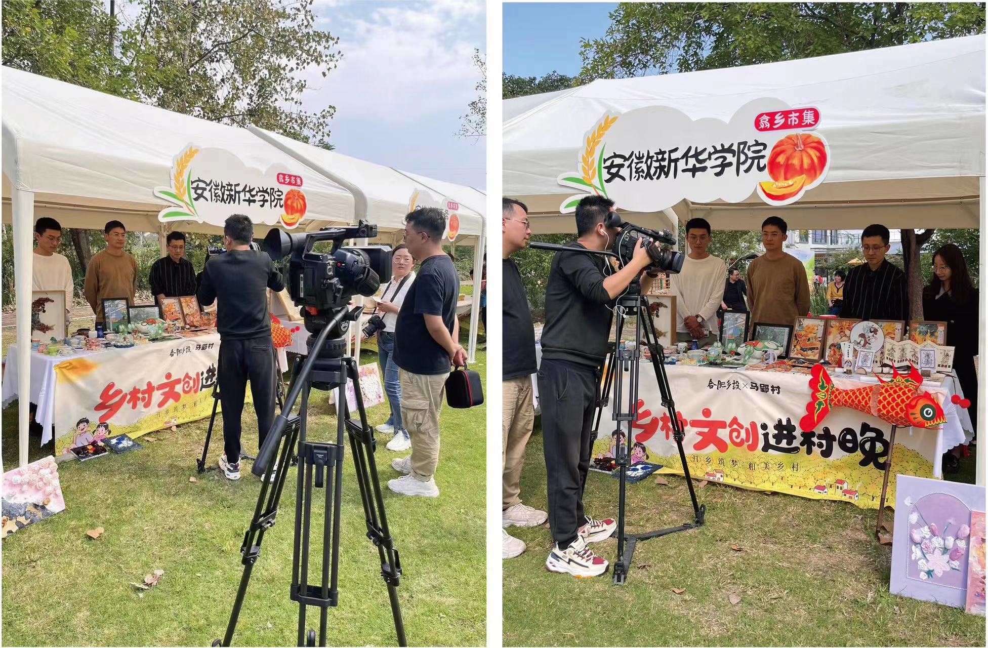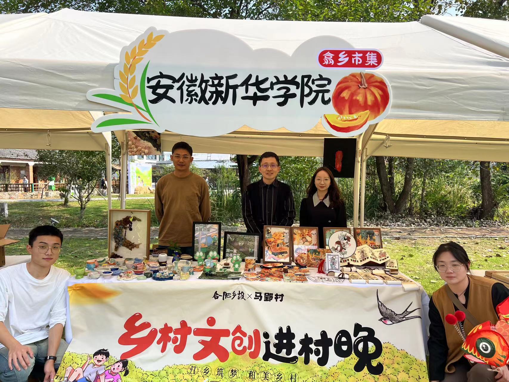 本网讯(通讯员:江河、朱蕾)为展现我国新农村丰硕成果和乡村振兴新气象,由中国文化和旅游部主办,文化和旅游部公共服务司、文化和旅游部公共文化发展中心、安徽省文化和旅游厅承办,安徽省文化馆、中国文化馆协会、合肥市文化和旅游局、长丰县人民政府实施的“大地欢歌·美好安徽”全国秋季“村晚”合肥长丰示范展示活动于2023年10月14日在合肥市长丰县杨庙镇马郢村举行,国家公共文化云、安徽公共文化云全程直播。我校艺术学院教师王晓俊、朱蕾、王伟指导学生创作的30多件文创作品荣幸被推选参加本次现场“乡村好物展”直播活动。