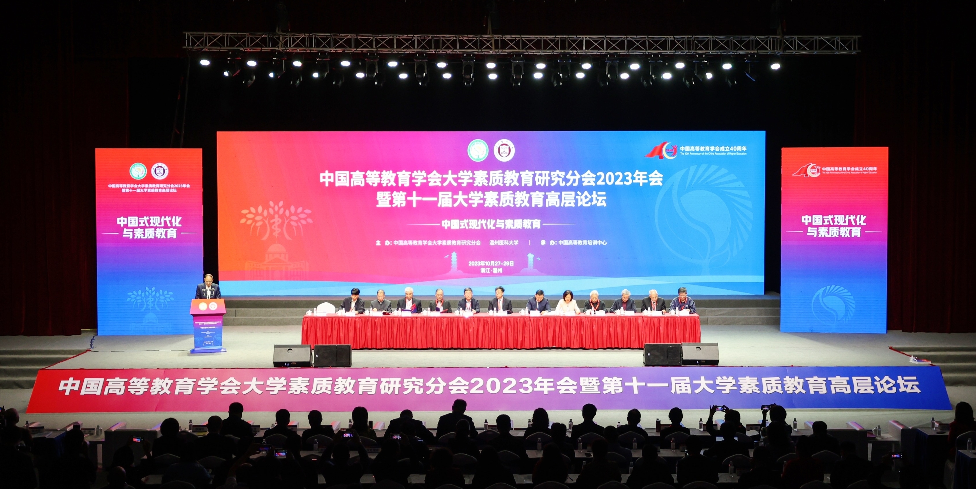 本网讯(通讯员:李彩平)10月27日至29日,中国高等教育学会大学素质教育研究分会2023年会暨第十一届大学素质教育高层论坛在浙江温州隆重召开。本次论坛由中国高等教育学会大学素质教育研究分会与温州医科大学联合主办、中国高等教育培训中心承办。论坛主题为“中国式现代化与素质教育”。来自140余所高校的400余名与会代表参会。线上通过中国高等教育培训中心、人民网文化在线、浙江卫视中国蓝新闻矩阵等平台进行直播,共有6.4万人次收看了开幕式及大会报告。我校大学生素质教育研究中心主任刘瑞平,主管李彩平和中心兼职研究员毛宗山、徐莉参加了此次论坛。