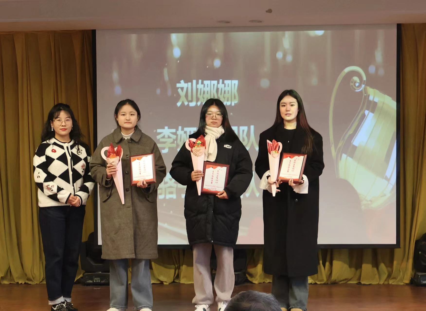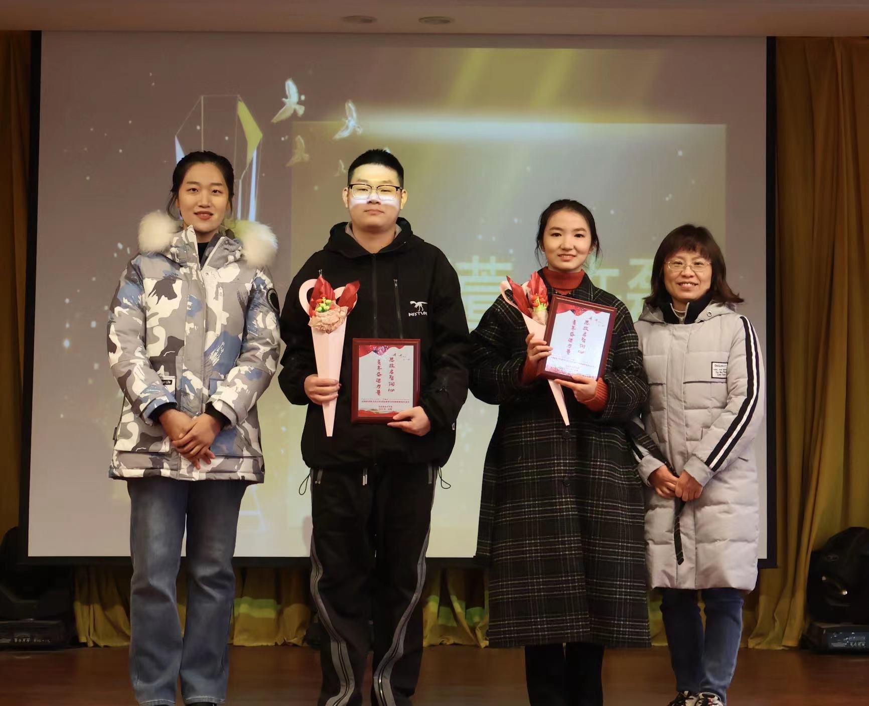 青年“奋进”,硕果累累。在本次活动最后环节,对我校学生在安徽省第八届学生“学宪法讲宪法”省级比赛活动、第四届“新时代·新思想·新青年”安徽省大学生学习马克思主义理论成果大赛、第十届“挑战杯”安徽省大学生课外学术科技作品竞赛红色专项、安徽新华学院2023年“学宪法讲宪法”素养竞赛和演讲比赛活动中获得名次的学生团队进行颁奖。主持人现场邀请多次获得荣誉的刘娜娜同学发表获奖感言。作为多个奖项得主,刘娜娜同学除感谢马克思主义学院思政教师的倾情指导和付出外,还向在场同学们强调了尝试的重要性,鼓励大家积极参加各类比赛,敢于探索、勇于创新。
