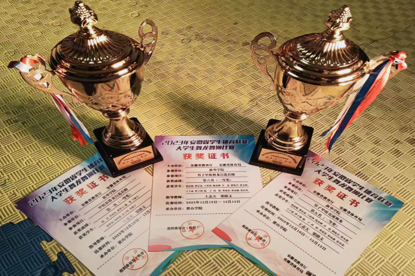 此次2023年安徽省学生体育联赛大学生舞龙舞狮比赛在安徽省教育厅和安徽省体育局的大力支持下,共有来自省内各高校的15支代表队、300余名运动员在黄山学院齐聚一堂,展开精彩对决。比赛设有舞龙、北狮、南狮、彩带龙等多个项目。我校队员分别参加了舞龙、彩带龙两个项目的比赛。比赛现场,各支队伍使出浑身解数,高潮迭起。我校队员全神贯注,克服心理压力,时刻调整竞技状态和比赛心态,临场精神饱满,通过努力演绎赢得裁判的肯定与喝彩,斩获三座奖杯。比赛之余,队员们也热情地与其他高校的同学积极交流,认真学习其他队伍的长处,不断激励自己。