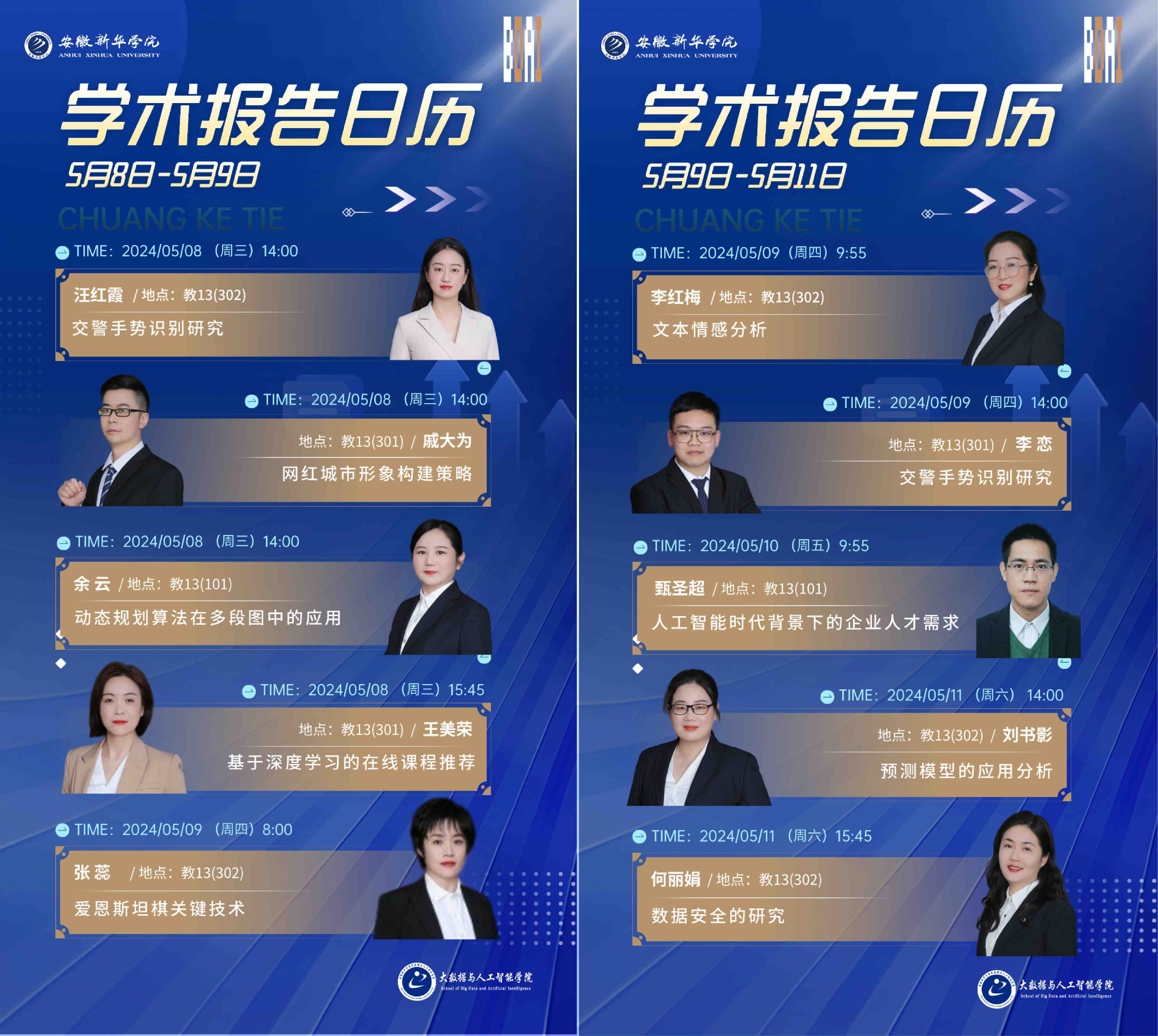 本网讯(通讯员:李钦钦)5月8日,大数据与人工智能学院“学术活动月”正式拉开帷幕。活动首日,活动月之“博士教授学堂”正式开讲。由戚大为副教授主讲的“新媒体语境中城市形象的构建策略及传播 ”学术报告会,余云副教授主讲的“基于动态规划算法在TSP研究中的应用”学术报告会分别在13#301教室和13#101举行。大数据与人工智能学院21级计科专业、21级人工智能专业学生和部分教师参加活动。5月8日和5月9日,大数据与人工智能学院在13#301、302多媒体教室开展了4场学术报告会,汪红霞副教授、王美荣副教授、李红梅副教授、张蕊教授登台主讲,21级计算机科学与技术专业学生、部分教师代表积极参加了报告会。