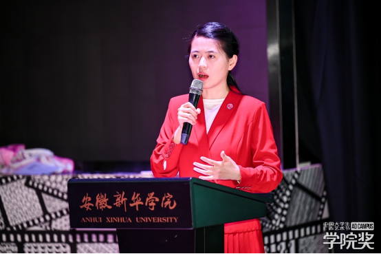 广告人文化集团副总经理、大赛组委会代表马雪松先生为安徽新华学院文化与传媒学院颁发“年度广告教育推动奖”证书。为了点燃每一位学子心中的创意火焰,马雪松先生现场为大家解读了大赛新赛制、新变化,让广大师生深入了解赛事详情。