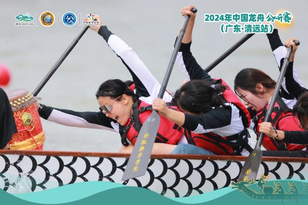 本次赛事由中国龙舟协会、清远市人民政府主办,广东省社会体育和训练竞赛中心、广东省龙舟协会支持,清远市清城区人民政府、清远市文化广电旅游体育局承办,是目前国内竞技水平最高、受关注度最高、群众参与面最广的顶级龙舟赛事之一。作为2024年中国龙舟公开赛全国首站,共吸引了来自全国各地的20支顶尖职业队伍和12支本土队伍,约800名运动员参与竞渡。我校女子龙舟队是一支年轻的队伍,由10名大一的学生组成,但面对九江双蒸、深圳龙协、华中科技大学、聊城大学等多个专业队伍依旧气势不减、毫不退缩,在比赛过程中带着对龙舟运动和体育竞技的热爱,挥动手中的桨,奋力向前划去,她们的汗水浸湿了衣袖,但心中却充满了激情,向全国各地的人们展现出我校学子顽强拼搏、奋勇向前的良好精神面貌。