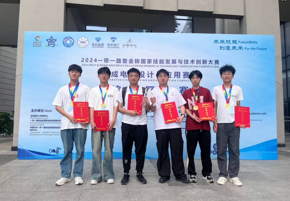 本网讯(通讯员:朱学玲)2024年第八届一带一路暨金砖国家技能发展与技术创新大赛-集成电路设计与应用赛项(皖赣赛区)于 2024年5月31日至6月1日在安徽大学謦苑校区举行。我校大数据与人工智能学院派出的两支队伍分别获得了一等奖和二等奖的好成绩。
