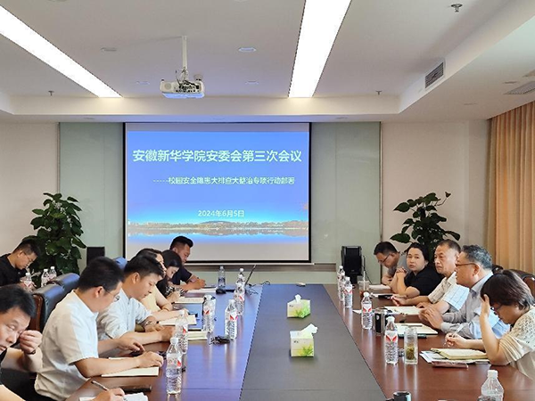 本网讯(通讯员:侯帅 摄影:侯杰)为深入贯彻落实全省校园安全隐患大排查大整治专项行动工作要求,6月5日下午,我校召开了安徽新华学院安委会第三次会议暨校园安全隐患大排查大整治专项行动部署会。副校长李金星,校长助理邵玲,学校相关部门、二级学院负责人参加了会议,会议由邵玲主持。