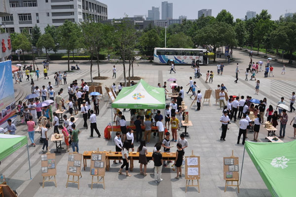 本网讯(牛山林,摄影:杨志敏)6月13日,土木与环境工程学院在翰林广场举办工业设计作品展。本次作品展以“工业设计,让美进入生活”为主题,展出了平面构成、色彩构成、立体构成、速写等100多件优秀作品,吸引了众多师生到场观看。
