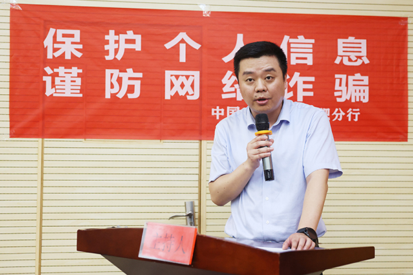 张羽代表农行蜀山支行感谢安徽新华学院多年来在业务上的支持和帮忙,农行作为金融业务的承接单位将为学院电诈预防和金融知识的宣传做出应有的贡献。