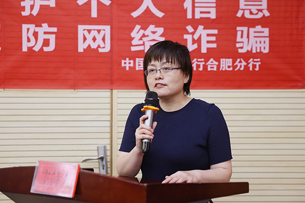 邵玲首先致辞,她感谢农行蜀山支行一直以来对我校各项工作的支持。今天又联合高新派出所专程来校开展防范电诈和“断卡”行动宣讲,希望同学们提高反诈意识,积极宣传反诈知识,共建“无诈”校园。