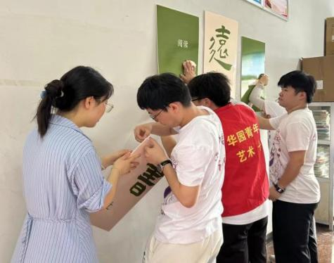 在乡村振兴的征途上,艺术学院“华园青年艺术+”志愿服务团队将他们的艺术才华与满腔热忱倾注于长丰县罗塘乡拐集村的农家书屋之中。他们不仅为书屋的装饰布置锦上添花,更是以艺术之力赋予乡村新的生机与活力。
