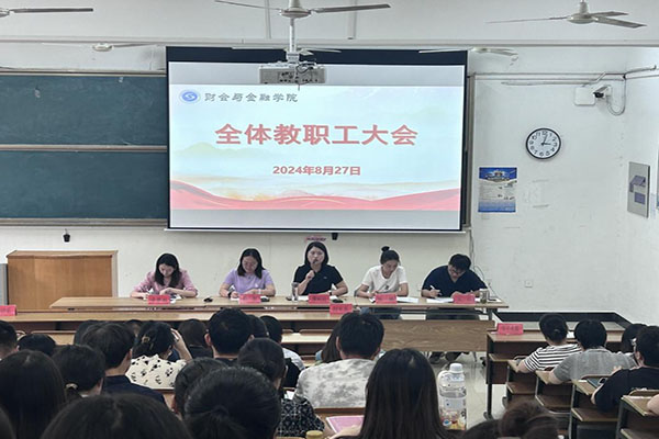 本网讯(通讯员:唐洁玉)为保障2024年秋季学期教学工作的平稳运行,加强教学质量监控,完善工作安排部署,8月27日,财会与金融学院在教12(102)召开全体教职工大会。会议由财会与金融学院执行院长濮明月主持,各分管领导对于开学迎新、教务工作、教学改革等问题做出详细指示。全体教职工积极响应、紧密配合,认真开展期初教学检查及相关准备工作,营造良好的开学氛围。