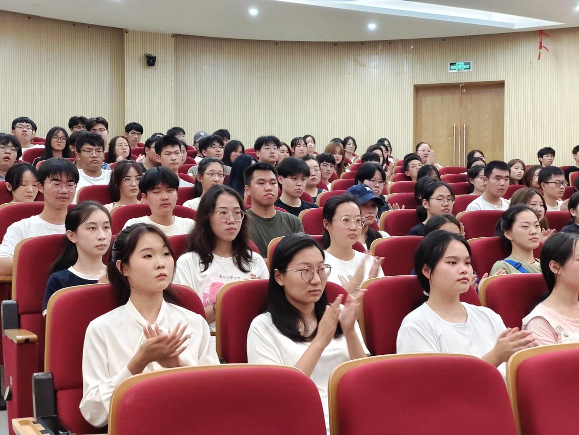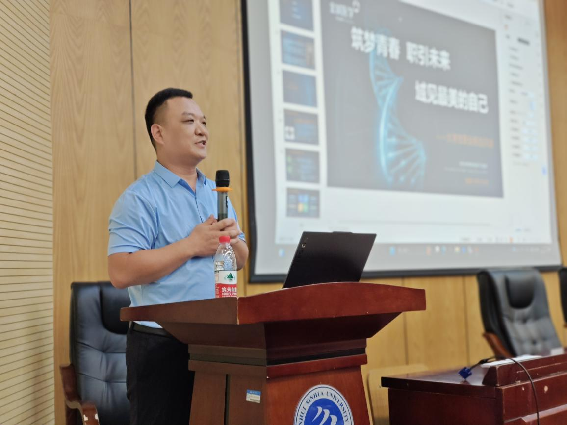 随后进入校友授课分享环节,王友坤以“筑梦青春,职引未来——域见最美的自己”为主题,并以自身学习及工作经历,深入剖析未来就业趋势,鼓励同学们明晰目标、早立规划、切实行动,找到适合自身的发展方向,尽早科学做好职业规划。讲座中学生与校友积极互动提问,现场气氛热烈,掌声不断。