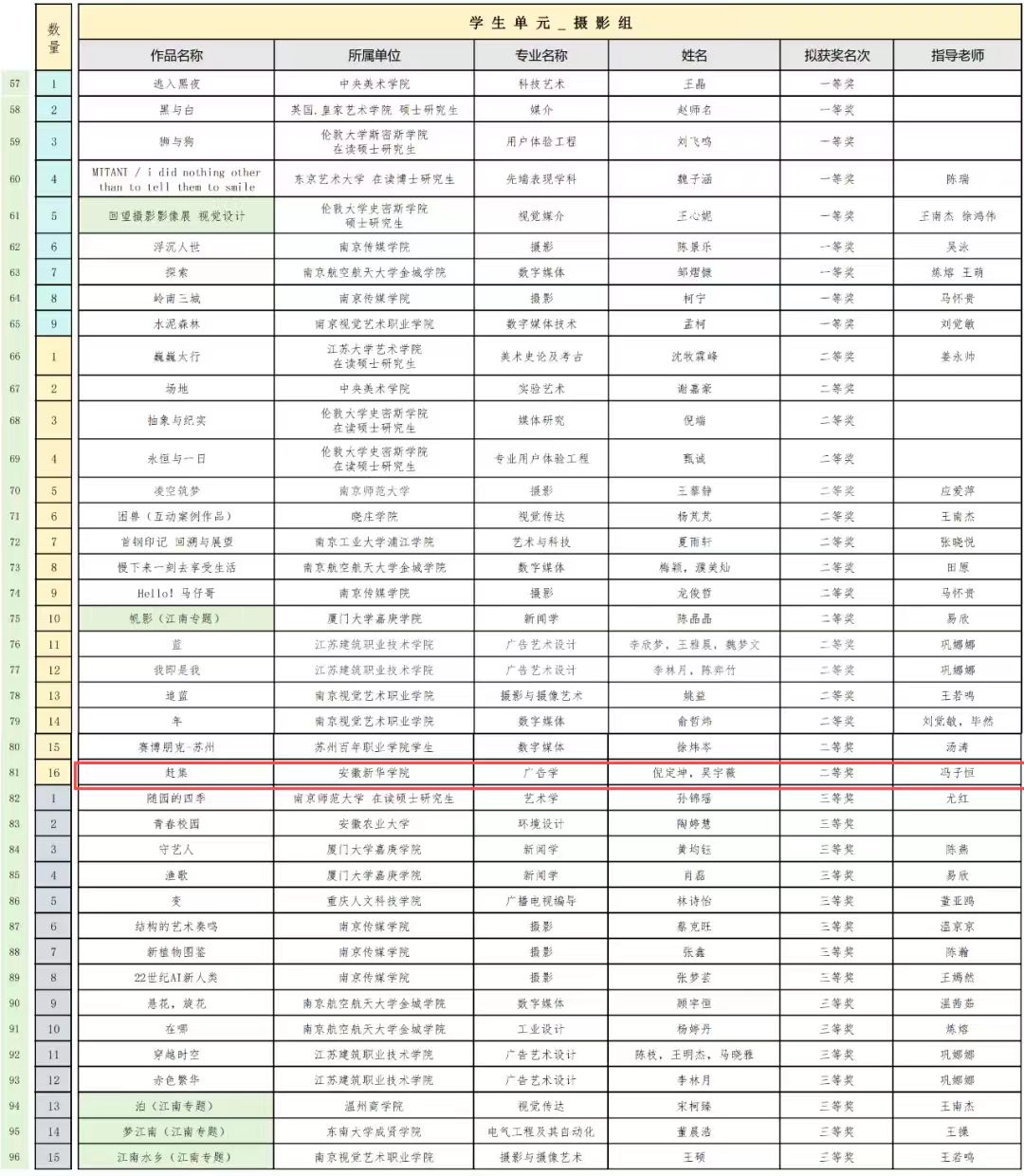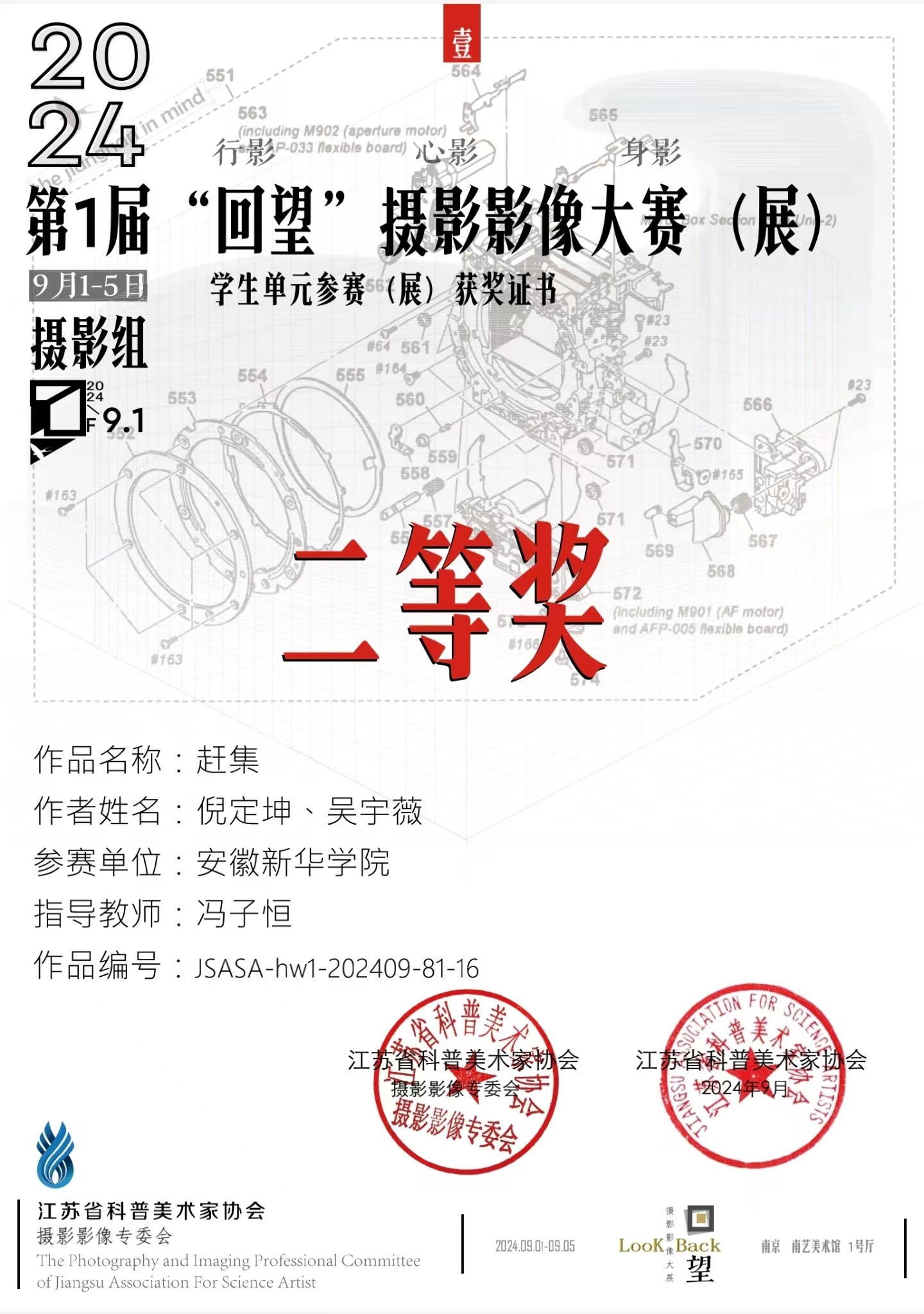 本次大赛是第五届江苏科学与艺术创新大赛的重要组成部分之一,大赛旨在通过摄影艺术的形式,回顾与记录社会变迁,促进文化交流,加深公众对传统文化的认识与理解。同获此奖项的还有来自中央美术学院、东京艺术大学、英国皇家艺术学院、南京传媒学院、南京师范大学等国内外知名高校的学生代表。我院学生拍摄的作品《赶集》以安徽合肥周谷堆旧货交易市场为背景,生动地捕捉了市场上人群熙攘、交易活跃的场景,展现了当地丰富多彩的生活。