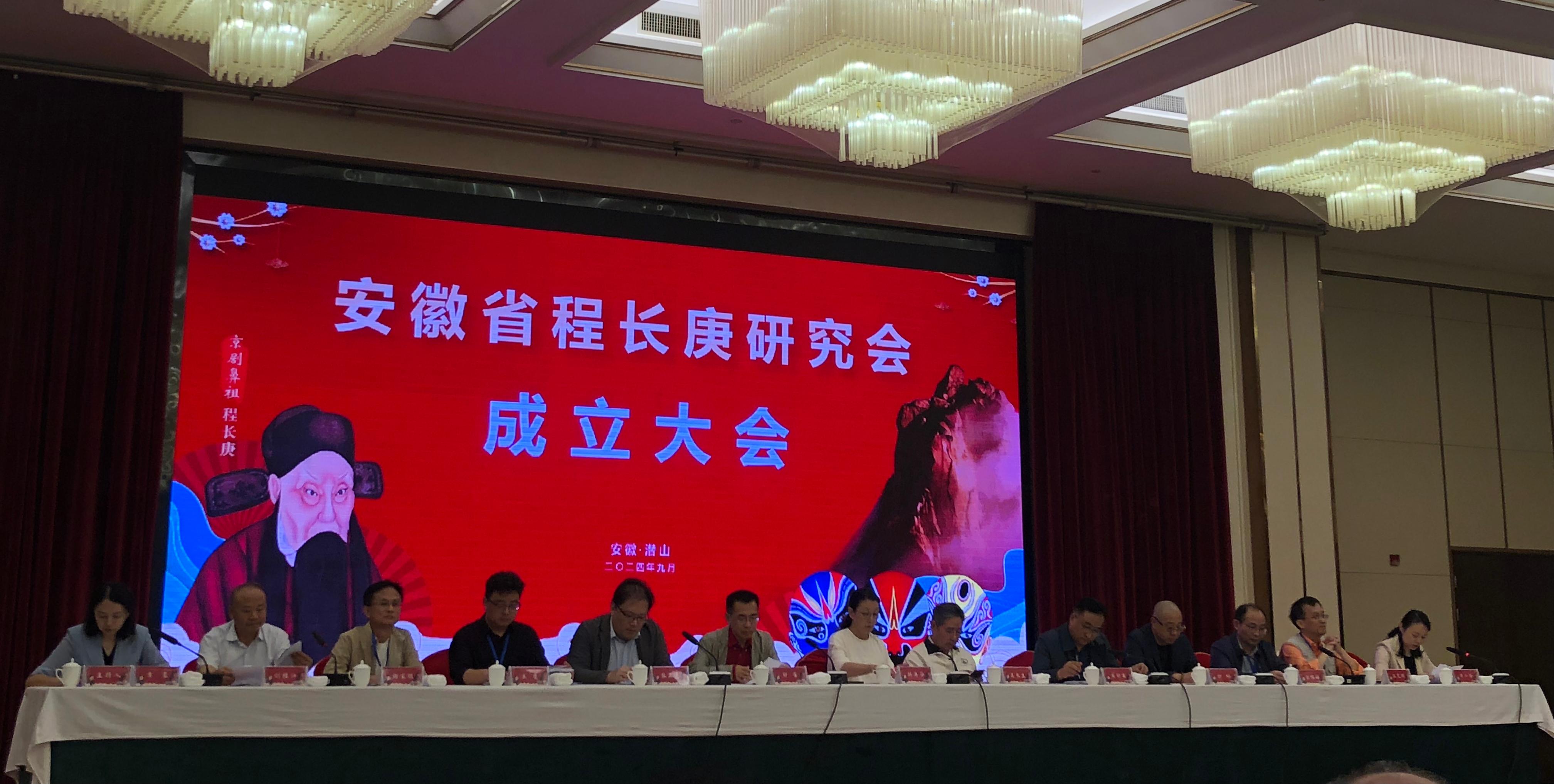 本网讯(通讯员:潘驰群)9月23日,安徽省程长庚研究会成立大会暨程长庚学术研讨会在潜山市举行。省社科联副主席江涛,程长庚后裔家族代表、人民日报高级编辑、国际部原主任吴长生,安庆师范大学校长彭凤莲,中国戏剧家协会副主席、安庆再芬黄梅艺术剧院院长韩再芬,安庆市人大常委会副主任、潜山市委书记梅耐雪,中国艺术研究院戏曲研究所副所长郑雷,国家京剧院《中国京剧》杂志社主编张正贵,中国戏曲学院科研处处长、《戏曲艺术》主编吴新苗,省民政厅社会组织管理局局长夏云波,省社科联学会处主任张琛等出席会议。潜山市市长王国林主持开幕式。100余名来自全国各地的程长庚研究会会员代表、专家学者、程长庚后裔代表参加会议。