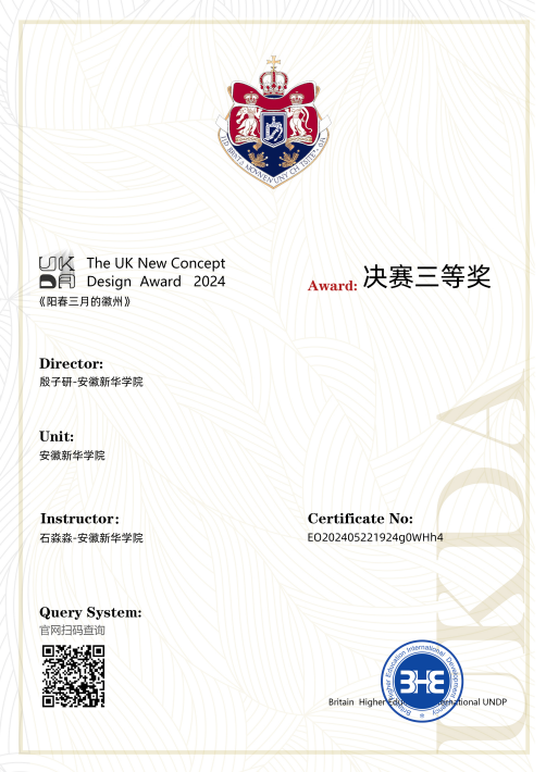 UKDA英国新概念艺术设计大赛由英国高等教育国际发展署发起,分设英国、中国赛区,赛事致力于挖掘、培养优秀高校设计艺术者,促进各地区间艺术与文化交流。在2024UKDA英国新概念艺术设计大赛中,石淼淼老师指导的殷子研同学荣获中国赛区三等奖,并报送决赛斩获三等奖。