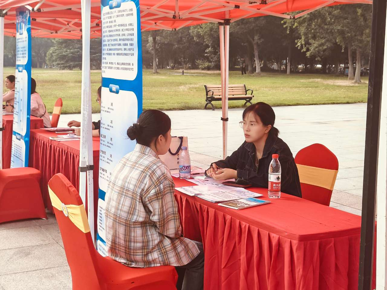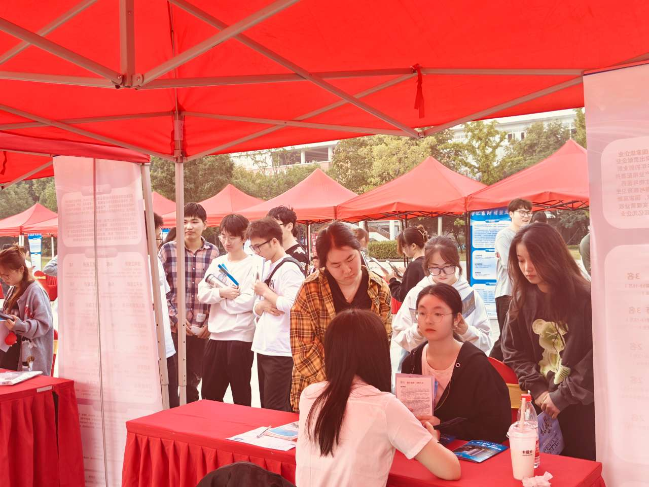 招聘会现场氛围热烈,毕业生们围绕工作内容、薪酬福利、工作时长、晋升渠道等方面与招聘企业进行面对面沟通交流。用人单位招聘人员就人才培养、岗位需求和未来规划等向毕业生做出诚恳解答。