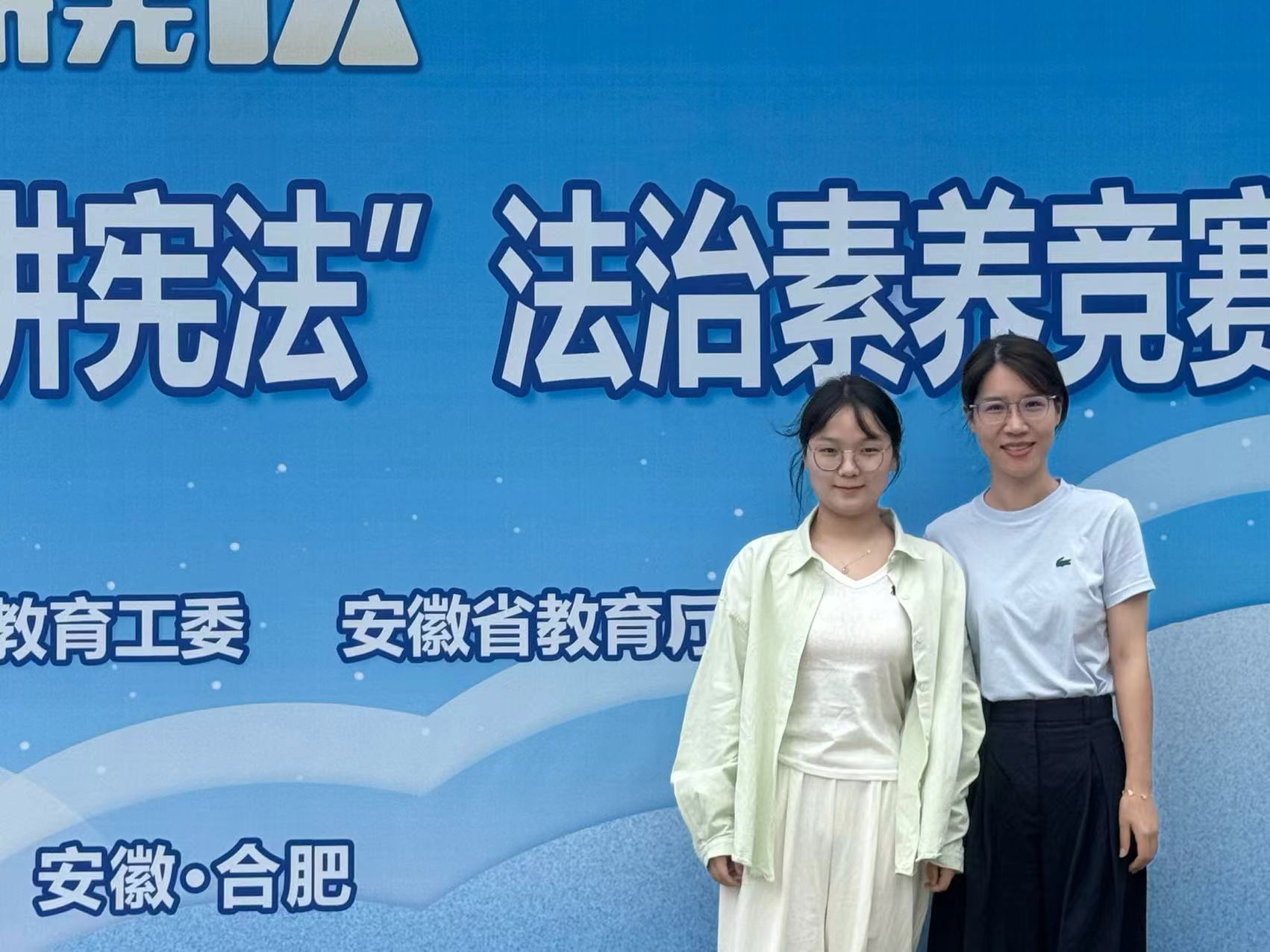 本网讯(通讯员:李颖)近日,安徽省第九届学生“学宪法 讲宪法”比赛落下帷幕。我校马克思主义学院教师指导的学生陈佳妮、李肖肖分获高校组演讲比赛三等奖、法治素养竞赛优秀奖。