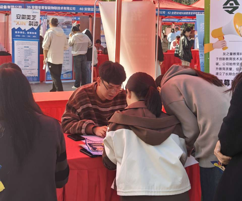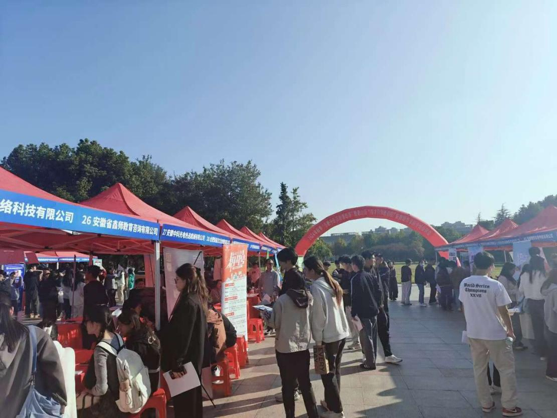 本网讯(通讯员:张稳)10月23日下午,我校联合合肥市蜀山区、阜阳市颍东区在图书馆南广场成功举办2025届毕业生校园招聘会。