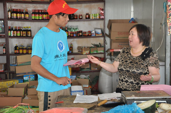 结合南溪镇正在开展的文明创建工作,实践队员们奔走在南溪镇街头,开展调研服务,了解问题所在,提出参考方案,为文明创建出一份力。南溪镇农贸市场隶属于金寨县商务局,由镇环保执法局代为管理,由于硬件薄弱、经营混乱等原因,市场内违章搭建、占道经营和“马路市场”的矛盾突出,脏、乱、差现象严重,成为文明创建的一块硬伤。实践队员们发放了近百份问卷,通过逐户走访的方式进行调研。通过对问卷进行数据分析,结合经营者意愿,均衡各方利益,实践队起草了《南溪镇农贸市场改建工作方案》,并对《南溪镇文明创建工作方案》进行了修订。这两个方案上报给南溪镇政府和镇环保执法局,为当地开展文明创建工作提供了第一手资料。