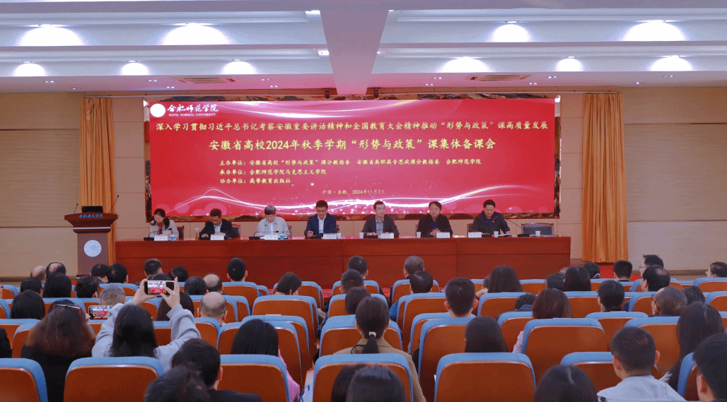 本网讯(通讯员:李静)为深入学习贯彻党的二十届三中全会精神和习近平总书记考察安徽重要讲话精神,及时将党的创新理论融入“形势与政策”课教学,不断提升“形势与政策”课教学的针对性和吸引力。11月2日,全省高校2024年秋季学期“形势与政策”课集体备课会在合肥举办。本次会议由安徽省高校“形势与政策”课分教指委、安徽省高职高专思政课分教指委和我院共同主办,高等教育出版社协办,合肥师范学院马克思主义学院具体承办。全省近百所高校马克思主义学院负责人、“形势与政策”课教师等160余人参加会议。我校马克思主义学院副院长董丽娟(主持工作)、教师李静参加了此次会议。