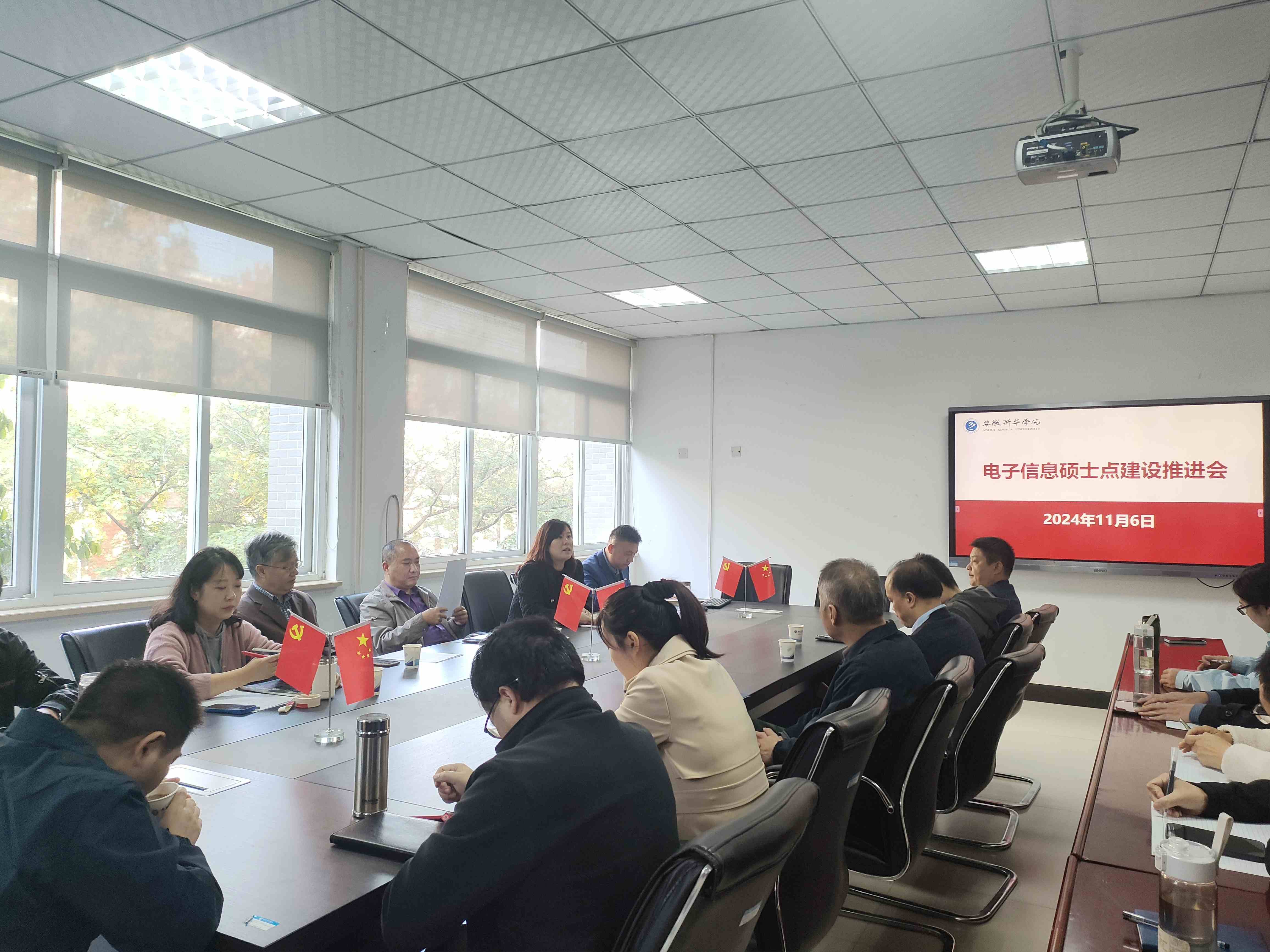 本网讯(通讯员:姚丽莎、周欢)2024年11月6日下午,为了深化电子信息专业硕士点的申报工作,提升申报材料的质量,促进学科的建设与发展,安徽新华学院电子工程学院/智能制造学院和大数据与人工智能学院在13号楼203会议室举行了电子信息专业硕士点申报工作推进会。科技处领导、两个学院领导和相关教师参会,共同讨论和规划硕士点申报的相关事宜,会议由大数据与人工智能学院执行院长郑妮主持。