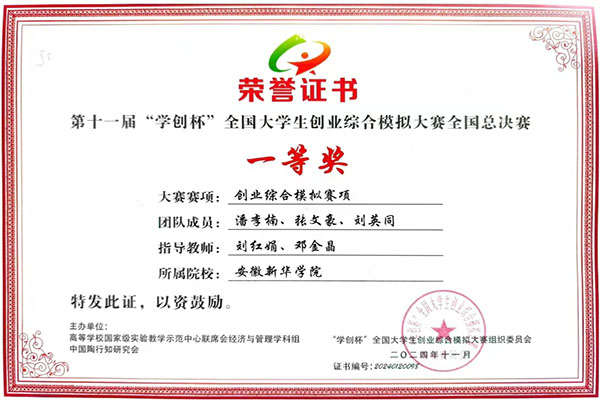 本届总决赛通过层层选拔,共有来自全国的172所高校,240支队伍进入最终对决,竞争异常激烈。我校新华一队代表队在众多参赛队伍中脱颖而出,凭借团队合作和扎实的实践能力,夺得全国一等奖。同时,安徽新华学院团队凭借出色的省级赛事组织和管理能力,荣获“优秀组织奖”,这是我校在创新创业教育领域取得的又一重要成果,充分展示了我校学生的创新能力和综合素质。