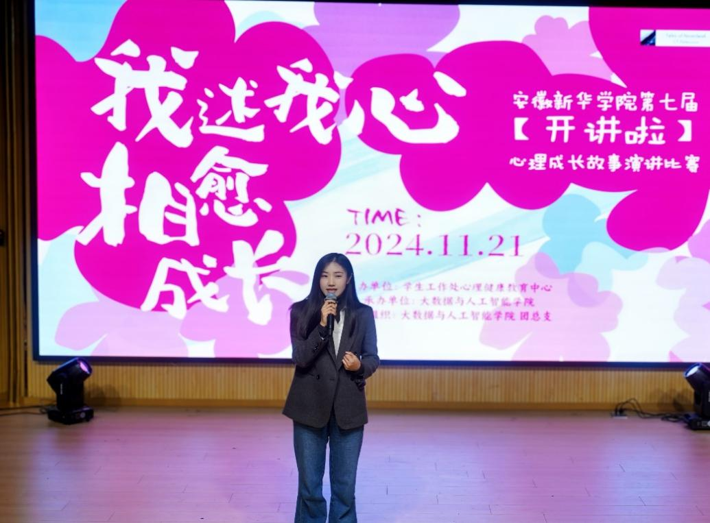 本网讯(通讯员:宋姣 凌云亮)为大力宣传与普及心理健康知识,增强学生的心理健康意识,引导大学生发掘内在潜能,帮助大学生们在大学生活中更好地塑造自身的性格、价值观和人生观,由我校学生工作处心理健康教育中心主办、大数据与人工智能学院承办的第七届“开讲啦”心灵成长故事演讲比赛决赛近日于学院演播厅顺利举行。此次比赛自启动以来,广泛吸引了全校师生的积极参与,展现了同学们对心理健康话题的高度关注与深刻理解,经过各二级学院的层层选拔,共有十位选手进入此次决赛。