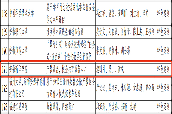本网讯(通讯员:李俊智)近日,由中国教育技术协会举办的“‘新质·引领·赋能’首届数字教育示范案例征集活动”入围案例名单正式公布,本次活动覆盖了全国31个省份的1000多所院校。经院校申报、专家论证等环节,确定首批标杆案例107个、优秀案例181个、特色案例311个。安徽新华学院财会与金融学院《产教融合,校企共育数智人才》项目在全国高校中脱颖而出,成功入围特色案例榜单。