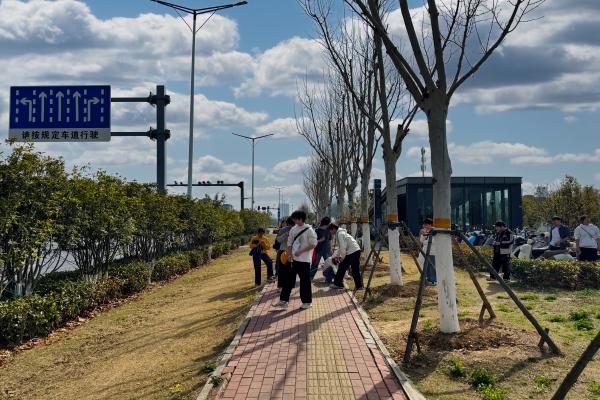 调研当天,师生团队分为测绘组、访谈组与环境分析组展开工作。测绘组利用测距仪、手机等设备对绿地地形、植被分布及周边交通动线进行精准记录;访谈组走访周边居民、地铁通勤人群,收集市民对公共空间的功能诉求;环境分析组则聚焦光照、噪音、人流量等数据,为后续设计提供科学依据。教师吴洲全程指导,引导学生关注场地与城市发展的联动性,强调"以人为本、生态优先"的设计理念。
