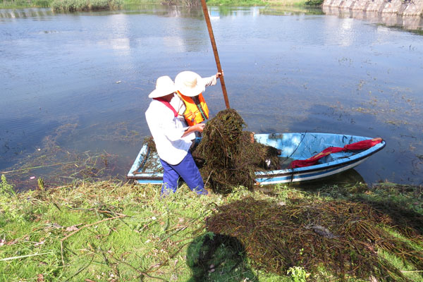 此外,工作人员对如琴南湖水草进行打捞,防止水草因断根脱落,大量漂浮在水面上,影响水质,破坏水生态环境。