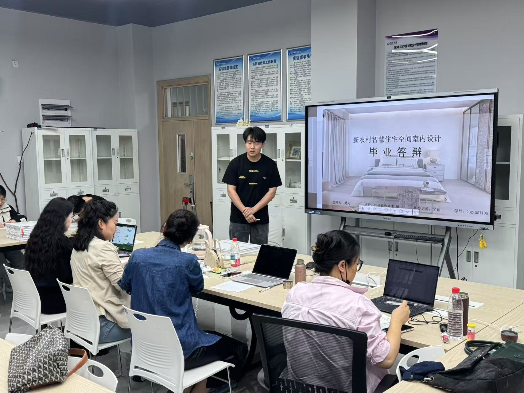 学院各专业的毕业设计答辩小组遵循学校和学院的统一安排,有序地进行了答辩工作。本次答辩重点考察了学生的学习态度、创新才能、毕业选题的价值与意义、综合运用知识解决问题的能力以及设计创新点,全面评估了学生的毕业设计成果。在答辩会上,学生们对自己的毕业设计和主题进行了详尽的阐述,从研究背景、研究方法、实践创作等方面进行了全面的讲解,准备充分,表达清晰,展现了艺术学院学生扎实的专业基础和出色的沟通技巧。答辩过程中,教师与学生之间的互动频繁,学术讨论氛围浓厚。