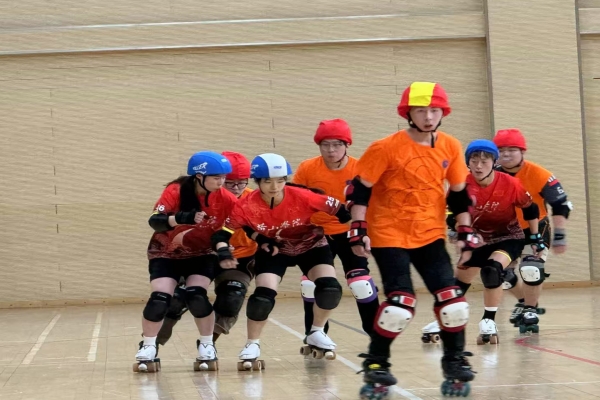 轮滑阻拦赛(Roller Derby)是一项高强度、快节奏的团队运动,成员之间的默契程度是决定比赛胜负的关键因素之一,这种默契不仅体现在战术执行上,更渗透到团队协作的每一个细节中,我校轮滑阻拦队员在赛场上沉着应战、奋勇拼搏,默契配合、稳扎稳打,其中,队员刘诗豪以高难度动作和流畅表现赢得全场掌声,成为赛事亮点。