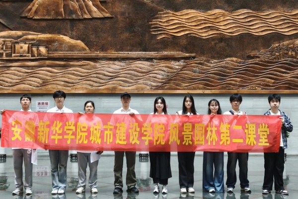 本网讯(通讯员:李硕)近日,城市建设学院建筑学专业赵文君老师和风景园林专业李硕老师,带领其导师制学生前往安徽省博物院,开展了一场生动的“专业第二课堂”实践教学活动。此次活动以“徽派文化·生态智慧”为主题,通过实地观摩与专业讲解,引导学生深入探索传统园林艺术与现代景观设计的融合。
