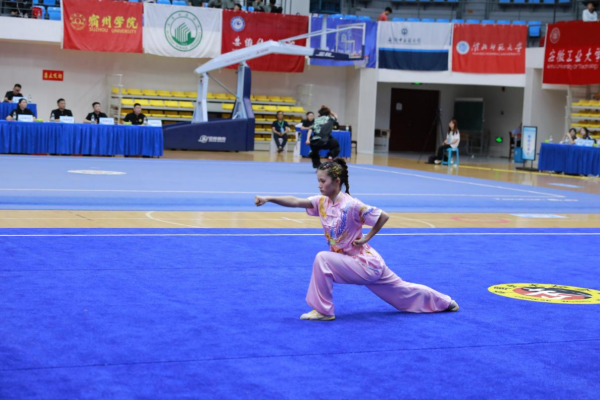 本次比赛由安徽省教育厅、安徽省体育局主办,安徽省学校体育协会执行,宿州学院承办,竞赛项目分为南拳、南刀、棍术、自选长拳、自选刀术、对练等男女20余个项目,吸引了来自全省44所高校的590名运动员参加,展现了安徽省高校武术比赛的最高水平。接到比赛通知后,通识教育部高度重视,委派武术俱乐部指导教师张燕和梁思弟即刻组建队伍,全力备赛。比赛期间,我校六名运动员顶住压力,凭借稳定发挥和出色表现,力压强敌,愈战愈勇,乘胜追击,最终,以全胜的成绩圆满完成本次比赛。