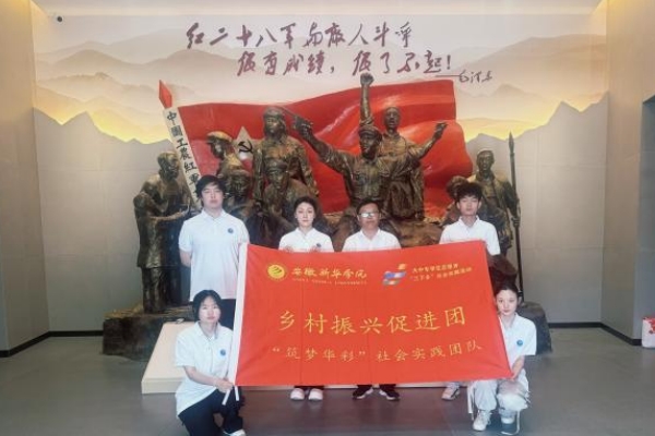 本网讯(通讯员:高巧明 袁雪晴)为深入贯彻党的二十大精神,践行习近平新时代中国特色社会主义思想,7月1日至3日,安徽新华学院城市建设学院“筑梦华彩”乡村振兴社会实践队奔赴革命老区金寨县,将“两个结合”的理论精髓融入田间地头,通过科技支农、红色铸魂、产业攻坚三位一体实践,为乡村振兴注入青春动能。