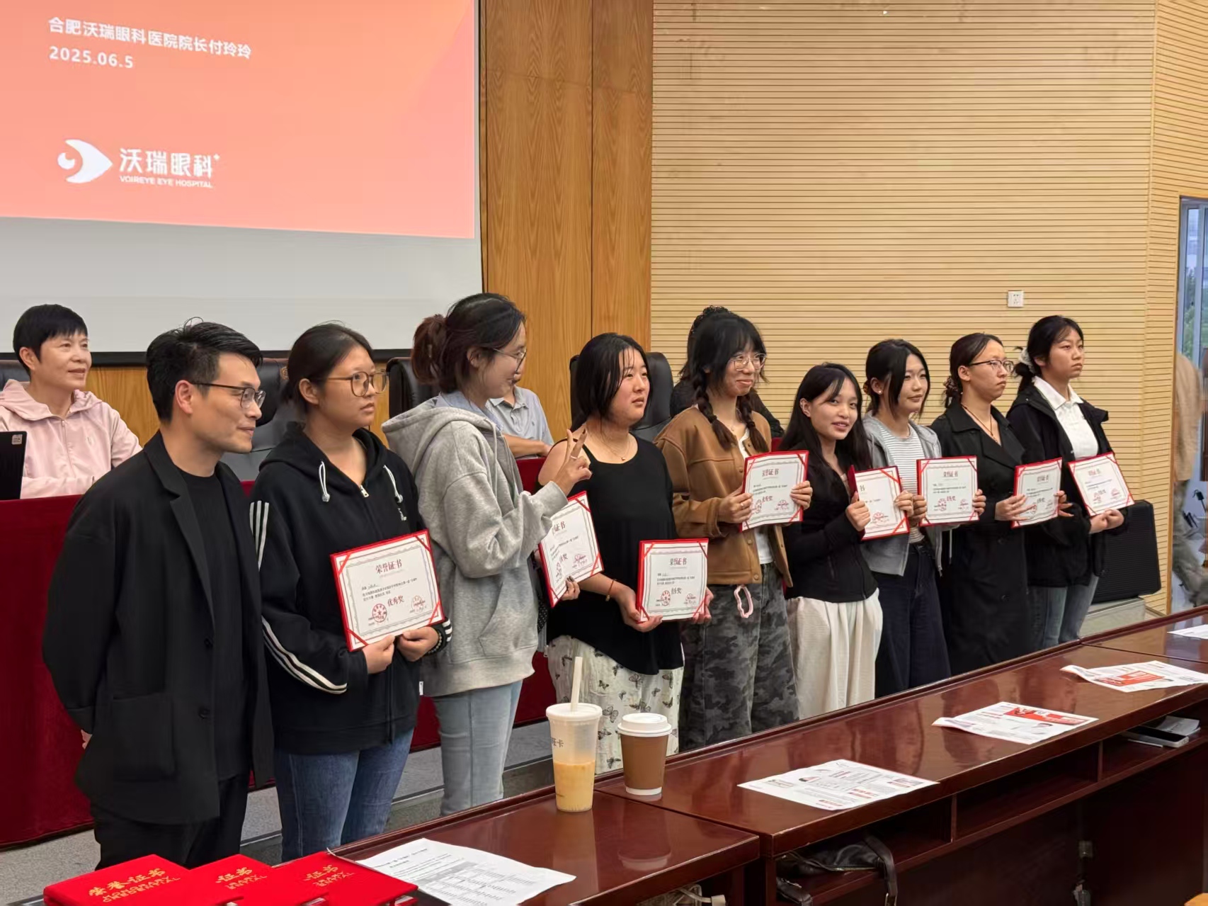 沃瑞眼科医院院长付玲玲、医院CEO韩光、医院主管姜雪,安徽新华学院艺术学院负责人本次大赛组委会主席崔学勇教授,以及大赛评委教师姜宜婷、吴洲、张小菊、朱书悦、谢博文等共同出席了仪式,与全体获奖同学齐聚一堂,共享喜悦时刻。