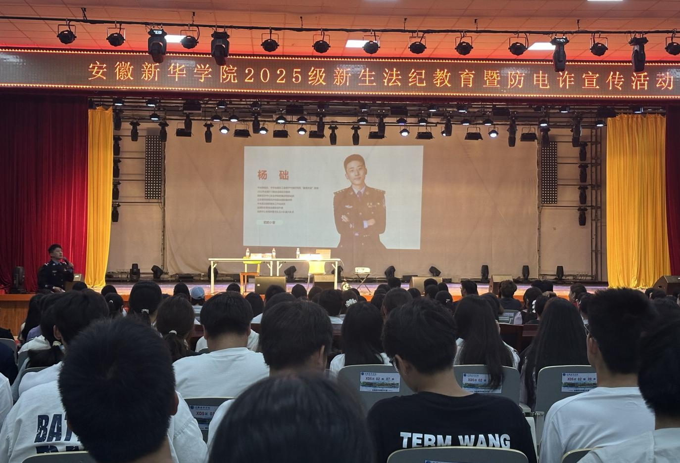 9月19日下午,校大礼堂举办“安徽新华学院2025级新生法纪教育暨防电诈宣传活动”,特邀杨础警官担任主讲,600名新生代表现场参与学习,在沉浸式宣讲中提升法纪意识与反诈能力。