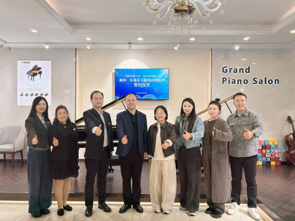 本网讯(通讯员:李尚锋)为深化产教融合,创新音乐人才培养模式,为学子搭建从课堂到岗位的实践桥梁,10月28日,音乐学院与合肥市乐海琴行有限公司隆重举行“新华・乐海实习基地”签约仪式。音乐学院执行院长彭智、教学秘书郑永玲等代表出席,乐海琴行总经理蒋剑接待并参与活动。此次合作标志着双方在校企协同育人领域开启新篇章。