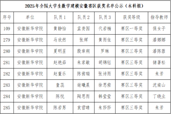 我校学子在2025年高教社杯全国大学生数学建模竞赛中首获安徽赛区本科组一等奖