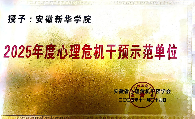 我校获颁“2025年心理危机干预示范单位”荣誉称号