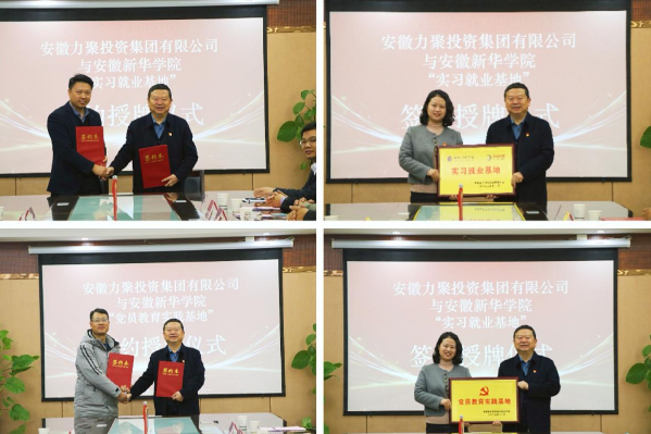 在随后的正式会议中,双方共同观看了力聚集团宣传片,进一步加深了彼此的认识。签约授牌环节成为本次交流会的重点与亮点。首先,力聚集团党委书记陈邦勤与安徽新华学院城市建设学院党总支副书记、副院长崔风波共同签署了“实习就业基地”合作协议,并由城市建设学院党总支书记、副院长(主持)汪青向企业授牌。此举旨在搭建稳定的学生实习与就业平台,助力应用型人才培养。